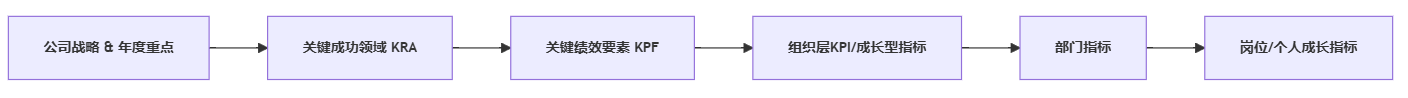 很多企业的绩效问题,出在指标是“拍脑袋”定的,与战略、业务重点和人才发展需求割裂。要避免这一点,推荐采用“战略→KRA→KPF→指标”的解码路径。