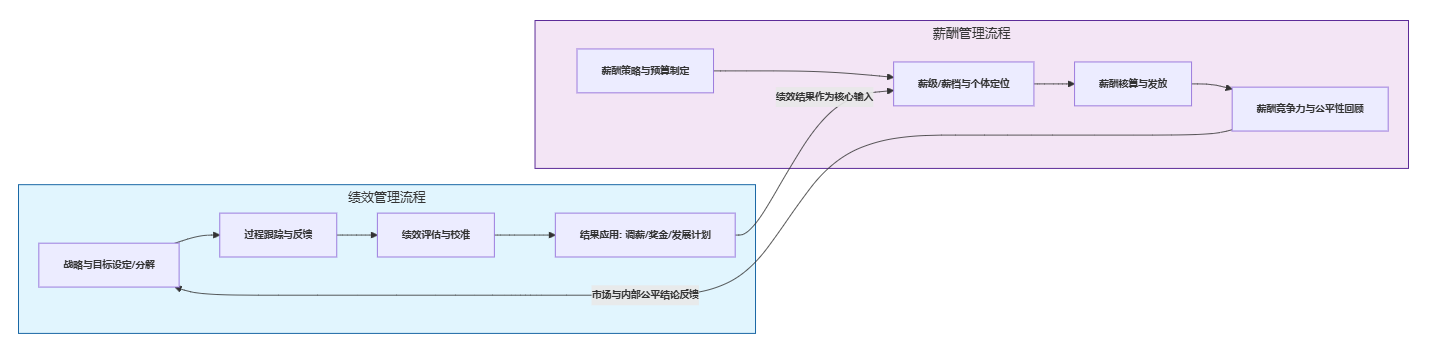 可以用一张流程示意图来串联绩效管理与薪酬管理的双闭环: