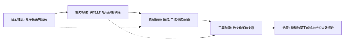 | 组织制度支撑 | 有流程、有标准、有工具、有培训 | 绩效制度停留在表格和分数,辅导全靠个人自觉 |