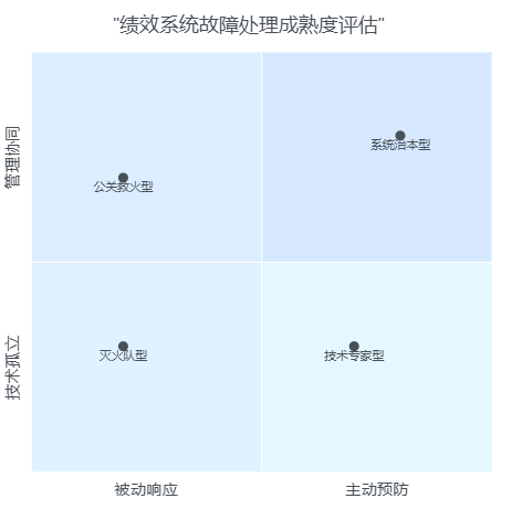 从组织成熟度看,企业在面对绩效系统故障时,大致可以落在四个象限: