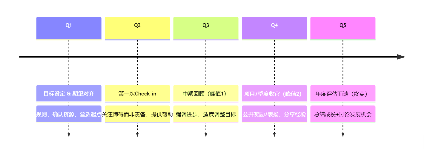 绩效周期如果只剩“期末一次紧张对话”,整体记忆自然偏负面。我们完全可以通过设计,把正向“峰值”分布在周期中。