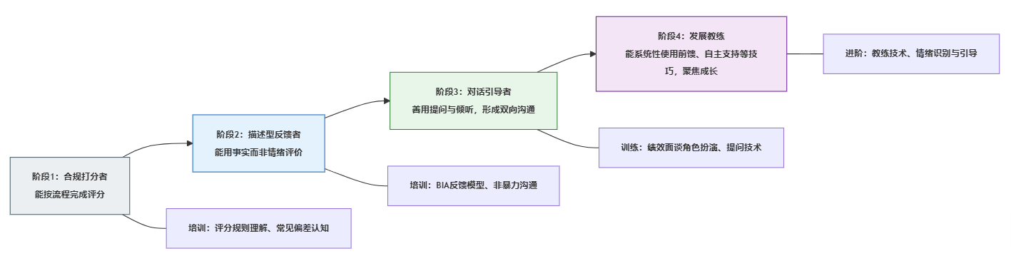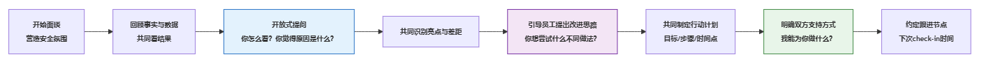 | 事后 | 期末绩效面谈 | 成长性前馈、认知重构 | 少贴标签,多谈未来计划和小步行动 | 发展计划模块,与考核结果关联 |