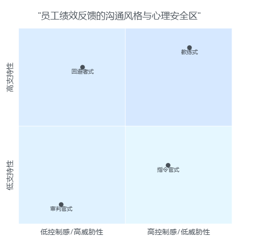 - 审判官式:低支持、高威胁,常见话术是“这是结果,不满意可以走人”,员工抵触情绪最强;
