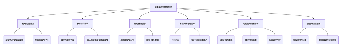在讨论具体场景前,我们先用一张框架图看一看:一个心理学友好的绩效系统,大致需要哪些核心模块。