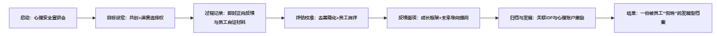| 优化过程体验与沟通 | 即时正向反馈、成长框架面谈 | 移动端一键认可并入档;面谈界面集成数据与问题模板 |