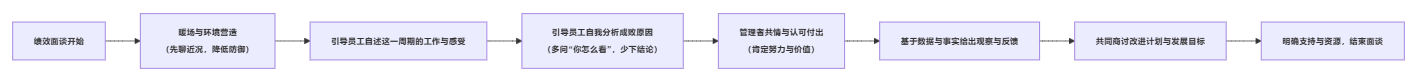 - 自述与自我分析:让员工先说,再点评;引导其自己看到问题,比直接指出更容易被接受