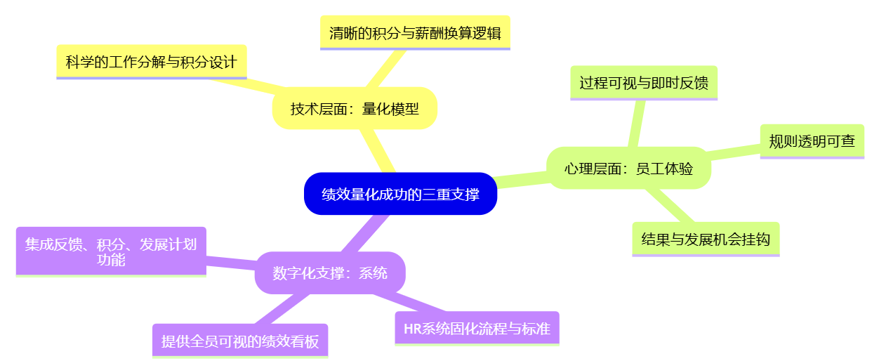 绩效量化不再只是“算分数”的工具,而是被嵌入一个以目标共创、持续反馈、透明评估和发展计划为支柱的闭环中,成为支持员工成长的机制。 - 从“经验式管理”到“心法 + 技术”的组合拳
