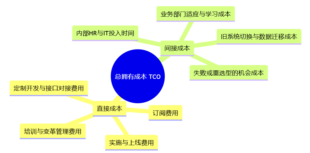 因此,在讨论“2025年绩效分析系统哪个好用”时,价格问题最好用“总拥有成本(TCO)”视角来理解,而不是只盯着“订阅费单价”。可以从下面这个“成本地图”来思考: