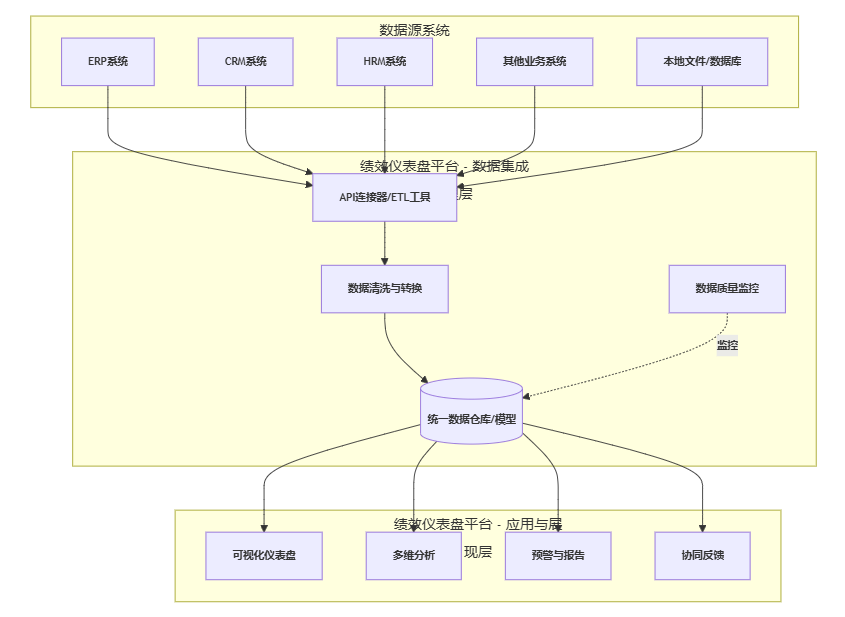 用一个简化架构图,可以更直观地理解绩效仪表盘系统在数据上的位置: