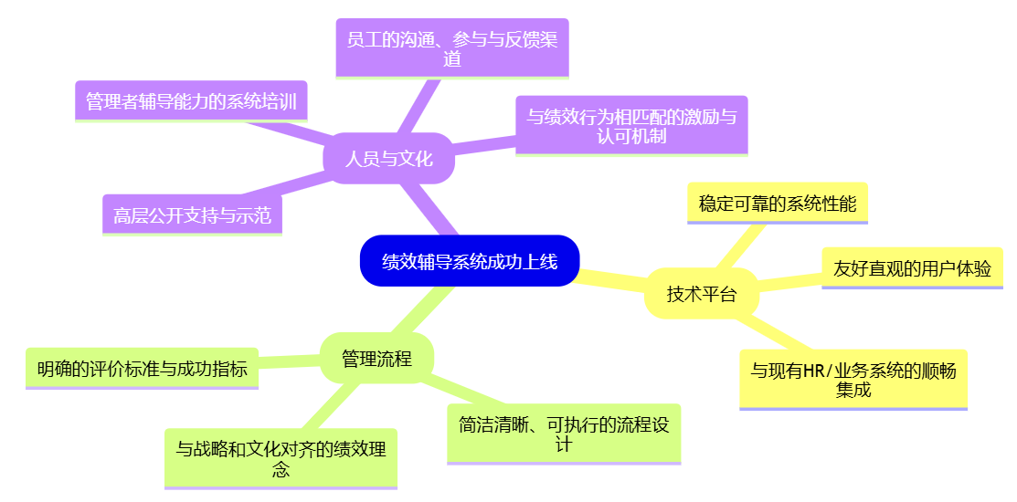 思维导图:绩效辅导系统成功上线的关键要素