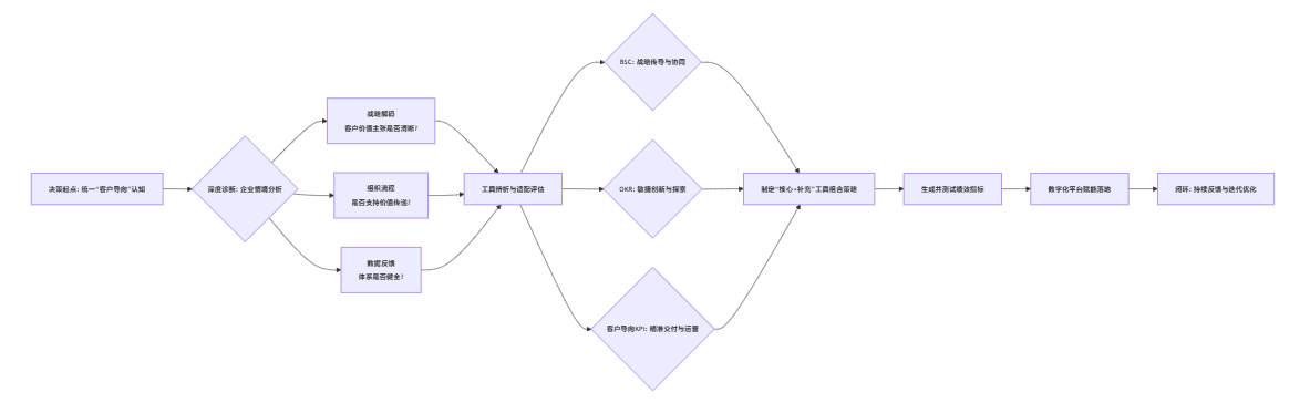 可视化:客户导向绩效工具选择与落地决策逻辑全景图