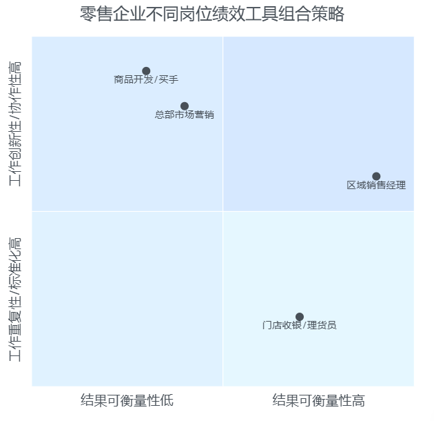 零售企业内部,不同岗位对绩效工具的敏感度完全不同: