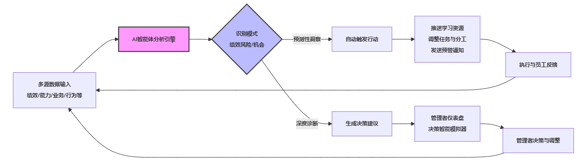 这张图想表达的是:AI不是替代管理者,而是作为“分析与行动的中枢”,持续推动闭环迭代。