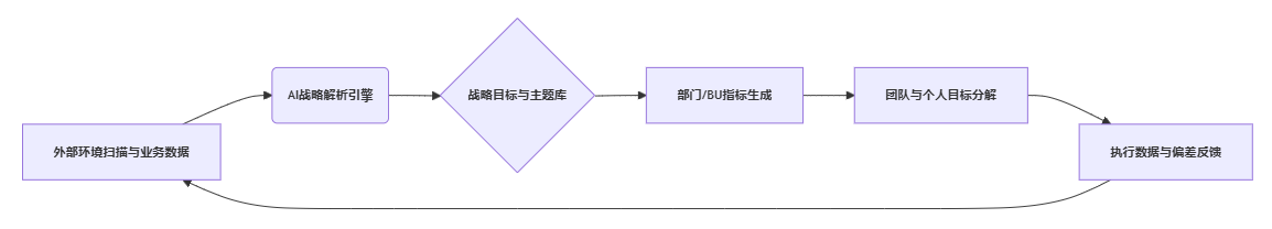 | 战略动态对齐模块 | 战略地图可视化、目标分解、偏差预警 | 战略难以层层落地、战略变动无法快速反映到指标 | NLP战略解析、关系图谱、可视化引擎 |