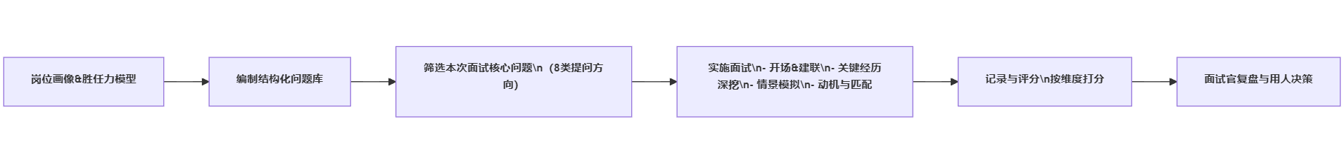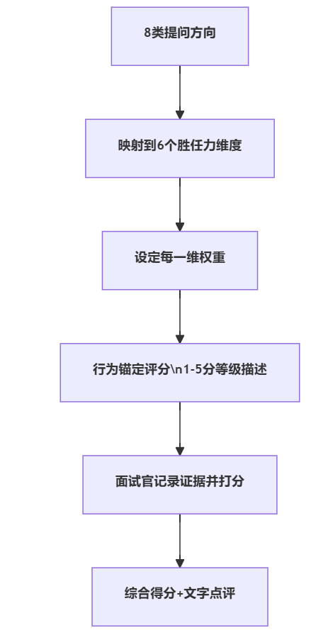 - 面后冷静打分:基于行为证据和评分规则,而不是“印象和好感度”。