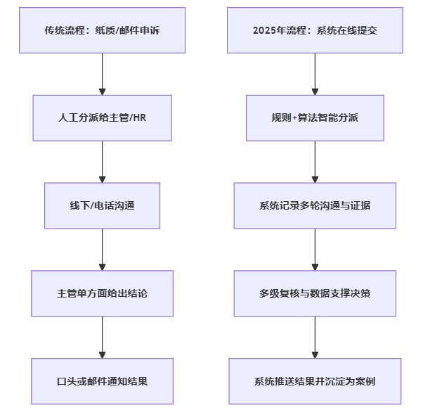 许多企业已经经历了从纸质绩效表到线上打分的数字化过程,但在绩效异议这一关键环节,依然停留在“员工发邮件—主管线下聊一聊—HR做个记录”的粗放模式。绩效结果一旦引发强烈不满,往往才匆忙启动“临时协调会”,事后却很难复盘到底哪里出了问题。