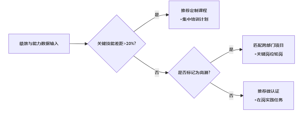 - 基于员工当前与目标岗位的能力模型对比,计算“技能差距”;