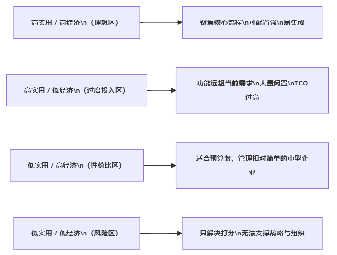 究其原因,多数企业在选型时,没有先回答一个根本问题:对大中型企业来说,什么才叫“经济实用”的绩效管理系统?只有把这个问题讲清楚,“选哪几款、哪一类产品”才有判断依据。