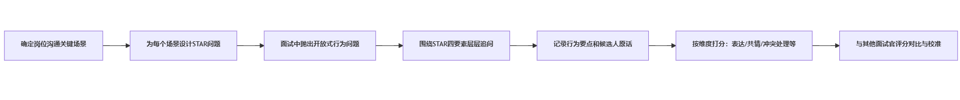 下面用流程图,把“基于STAR的沟通能力面试”串起来,HR可作为面试官培训素材: