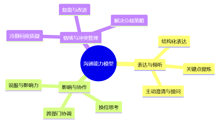 - 至少从表达与倾听、影响与协作、情绪与冲突管理三个一级维度拆解;