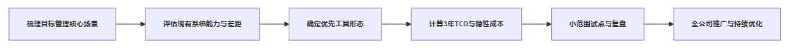 - 选一个业务条线,先用简单工具形态(比如现有项目工具+Excel模板)跑完一个完整目标周期,总结经验,再决定是不是需要更重的系统。