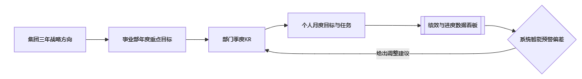 从集团中长期战略 → 事业部年度目标 → 部门季度/项目目标 → 员工个人目标,层层关联,而不是各写各的。 - 支持自下而上的目标校准和反馈: