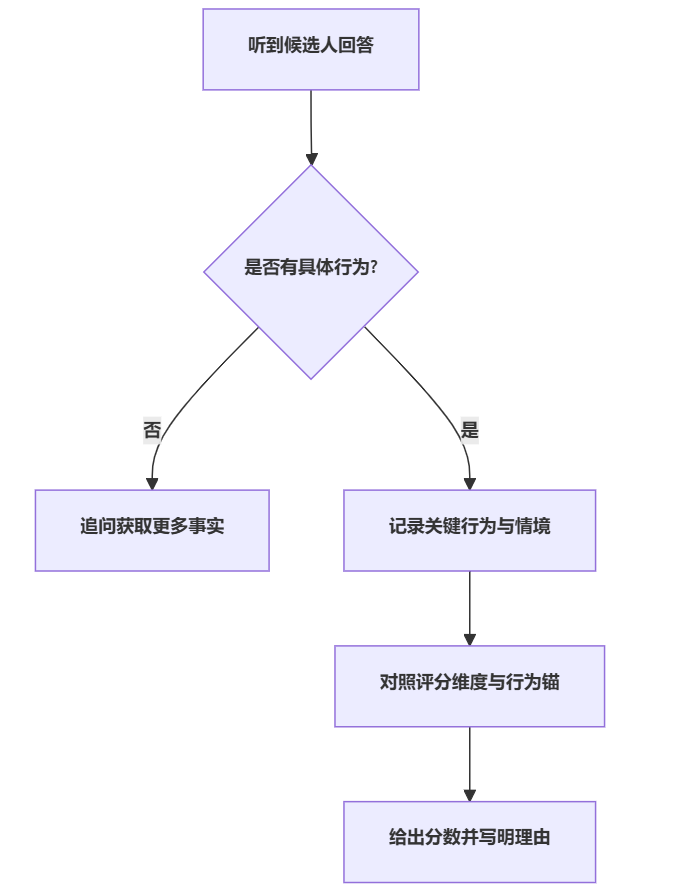 - 面试官在记录时,尽量写下原话或具体行为,而不是“感觉不错”。