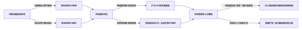 - 同时存在创新与稳态 → 设计“前台OKR + 后台KPI”的混合架构。