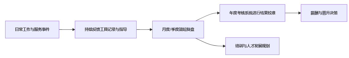 - 将一部分原本放在年终评估表中的过程维度,前移到持续反馈工具中,把年度考核简化为“对全年表现做整合性判断”。