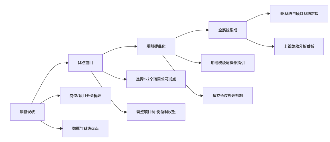 - 在试点中重点测试:项目制权重设多少、哪些岗位采用双轨、哪些指标容易产生争议;