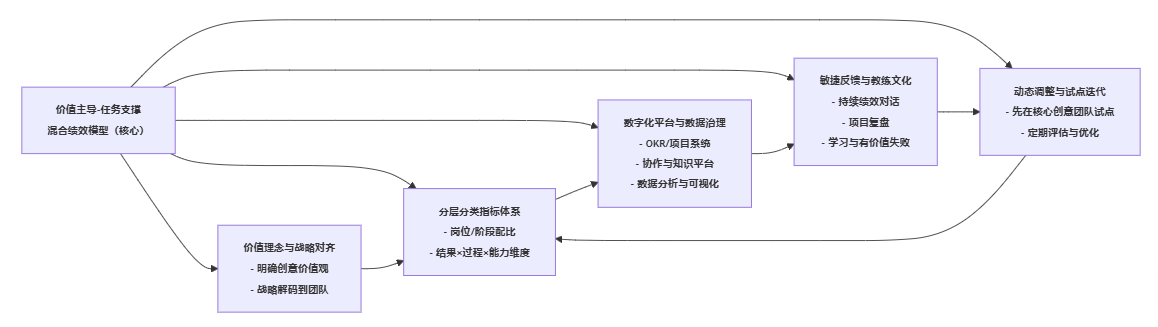在时间、预算、合规要求非常刚性的项目中,在偏执行和量产的岗位上,适度的任务导向指标能够帮助团队守住基本盘,避免“只谈理想不交付”的风险。 - 从整体设计的角度看:最优解不是“二选一”,而是价值主导、任务支撑的混合模型。