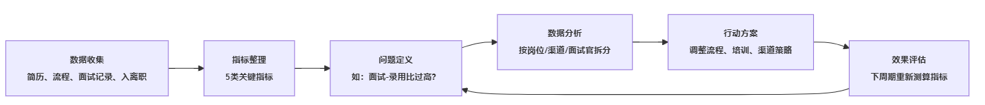 优化思路:在时间类指标之外,必须同时跟踪面试通过率、录用转化率、新员工留存情况,否则速度再快也只是“高速旋转的空轮子”。