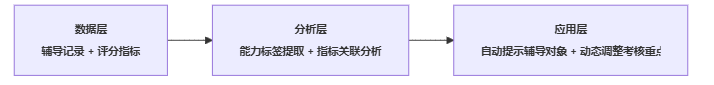 - 通过NLP等技术,将辅导纪要中的问题抽象为“授课节奏”“案例应用”“互动设计”等能力标签;
