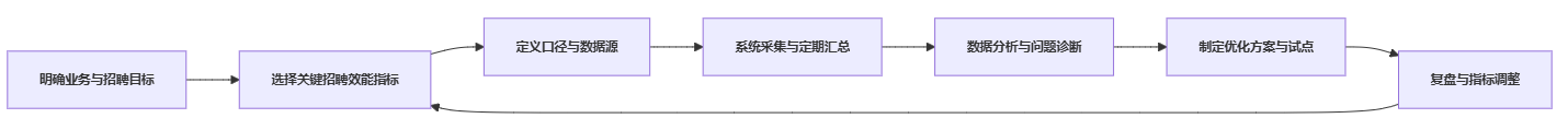 | 平均招聘成本 | 招聘投入总额/录用人数 | 帮助优化渠道组合与预算投入 | 只算“外部广告费” | 纳入内部推荐、管理时间等隐形成本 |