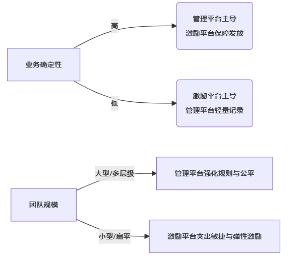 此时,更适合管理平台为主、激励平台为辅: