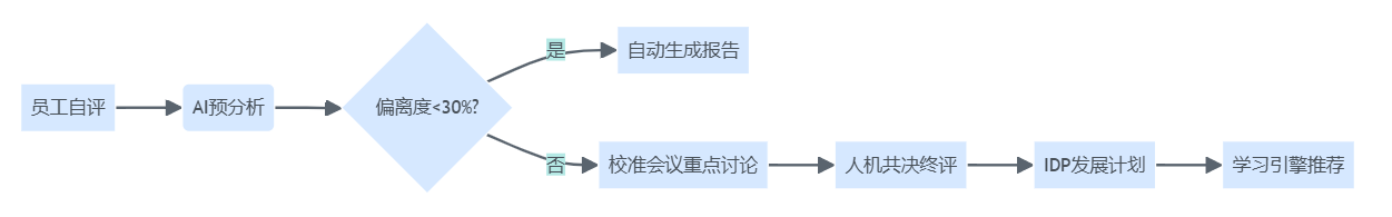 1. 流程再造:自评先行,AI预筛,校准聚焦有争议的少数