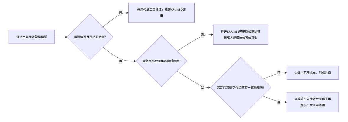 - 适合引入绩效数字化工具,优先从数据已较为规范的模块切入(如考勤、产量、质量);