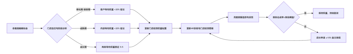 - 对新店、新业态:承认“前期可以适当牺牲效率换体验”,在绩效表上明示客户导向权重更高;