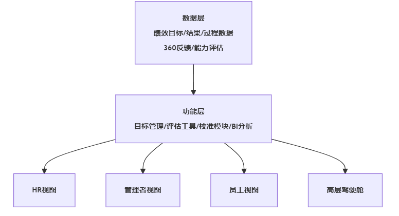 - 应用层:为不同角色(HR、管理者、员工、高层)提供定制化的视图与操作入口。