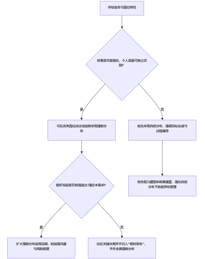 - 从团队与文化看,强制分布易引发内耗与防御性文化,自然分布更易支撑合作文化