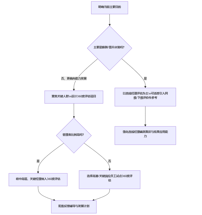 - 希望提升管理层素质、打造干部梯队 → 适合用360度评估。
