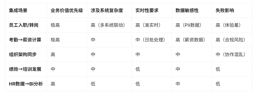 重点在于识别那些“牵一发而动全身”的关键集成场景。例如,员工入职场景可能涉及招聘系统、HR核心人事、AD/LDAP目录服务、门禁系统、IT设备管理系统、薪资系统等多个系统的数据流转与状态同步。一个环节的延迟或错误,将导致新员工无法快速投入工作,影响体验与效率。同样,考勤数据与薪资计算的联动、组织架构变更在HR系统与业务系统(如ERP、项目管理系统)间的自动同步、绩效结果与培训发展计划的智能关联等,都是高频且影响深远的集成需求。必须明确每个场景的业务价值、数据流向、实时性要求(如准实时、日批处理)、容错机制以及期望达成的效果(如提升效率30%、减少人工错误率至1%以下)。
