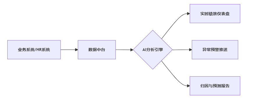 - 当某项绩效指标偏离目标时,AI根据历史数据和相关性分析,提示可能原因: