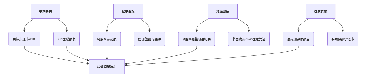 | 制度文本 | 《绩效管理办法》《薪酬管理制度》等 | 只写“按公司规定”,未写清调整条件 | 制度正式文本、修订版本留档 |