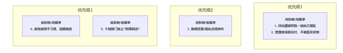 - 风险预判与治理:提前识别目标模糊、管理者应付、隐私风险等问题,设计对应的防火墙。