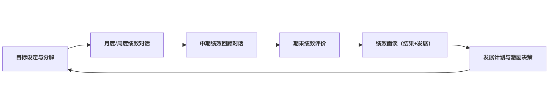 - 绩效面谈:以评估和反馈为主,澄清结果、传递导向、支撑决策。