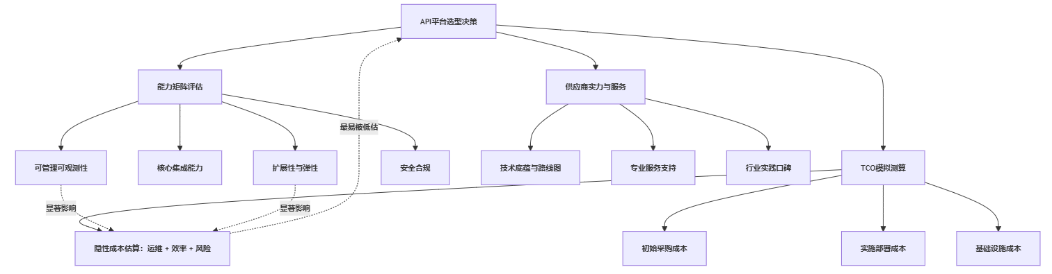 真正的成本控制,源于对API平台总拥有成本(TCO)的清醒认知。它远不止于采购合同上的数字,而是一个包含显性与隐性支出的复杂矩阵: