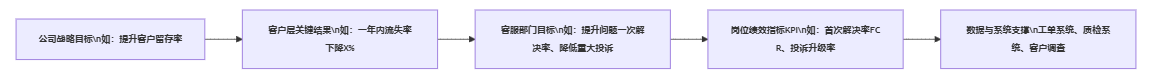某企业的年度客户维度目标是:关键客户续约率提升。客服部门被要求在服务环节支撑这一目标,于是部门目标聚焦在: