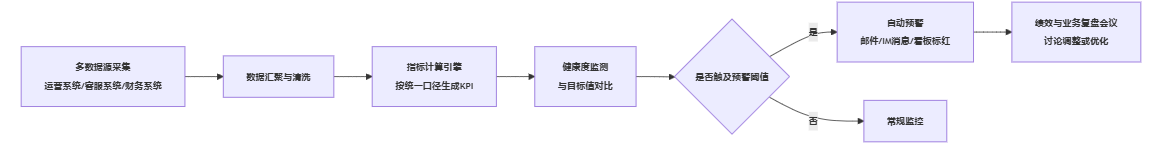 为了让这一机制不流于纸面,可以借助简单的仪表盘看板,把关键运营指标的健康度可视化。