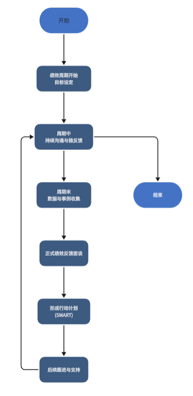 - 年度/半年度:正式绩效反馈面谈,系统回顾与规划